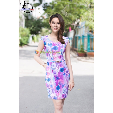 ĐẦM HẠ VY với dáng suông thanh lịch, họa tiết hoa nhẹ nhàng, tao nhã. Một chút cá tính với tay con cách điệu