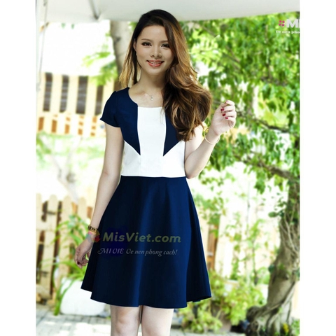Tay ngắn tạo cảm giác thoải mái và thanh lịch trong những ngày hè. - Kết hợp giữa hai gam màu,thân áo màu trắng cùng chân đầm màu xanh đen tạo cho bạn cảm giác tươi trẻ và thoải mái hơn.