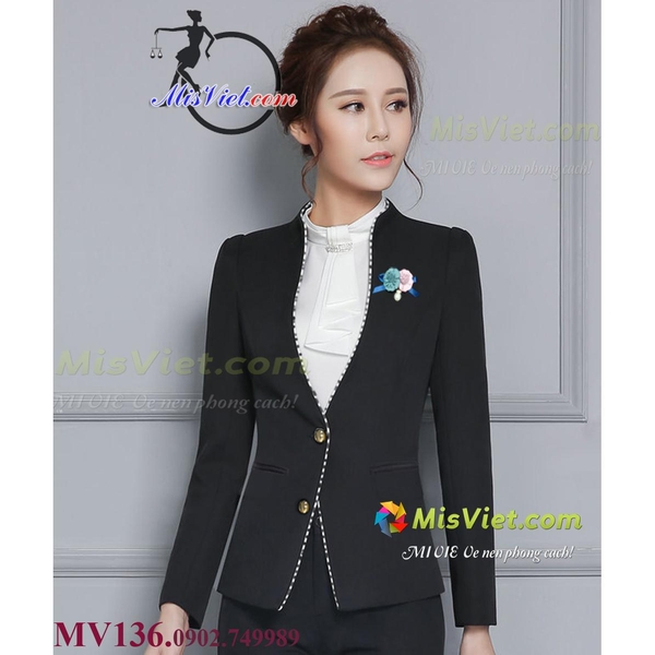 MV136 ÁO VEST CỔ TRỤ .Viền đen trắng