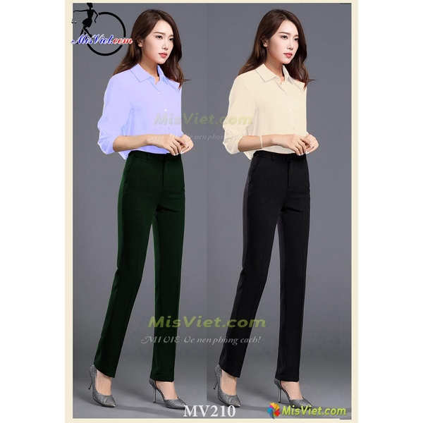 - MV210 QUẦN KAKI LỤA HÀN Rêu - Đen